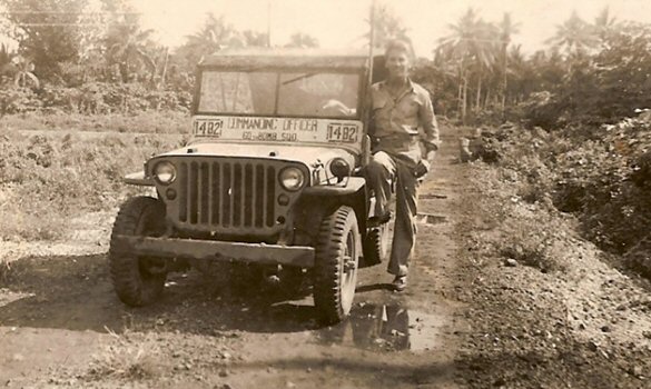 Meanwhile, on Guam, Lt. Davis wrote a letter to one of his younger brothers who was on a Destroyer in the Navy. His brother soon phoned. He had been wounded and was on the same Island. Cecil borrowed the Commander’s jeep and went to see his brother at the Navy base (photo above right). All four Davis brothers were in military service. The two younger brothers were in the Navy on Destroyers, one in the Pacific, one in the Mediterranean. Cecil and his older brother were in the Army Air Corps. |