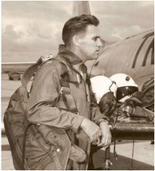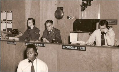 After returning to Headquarters 31st Air Division Cecil served as a Senior Controller, member Air Inspector’s Team, UFO Study and Reporting Team, Squadron Commander and special Assistant to Commanding General 31st Air Division. During this time he also flew Liaison officers often, particularly his commanding general, but not always in Liaison classified aircraft. In addition, Captain Davis flew cross country flights and the T-33 was a favorite for this. Photo below of Cecil with parachute and as Air Surveillance Officer in the Combat Operations Blockhouse. |