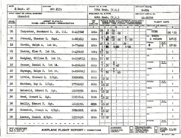Source: Airplane Flight Report dated: 02 Sept. 1945, provided by Elmo F. Huston