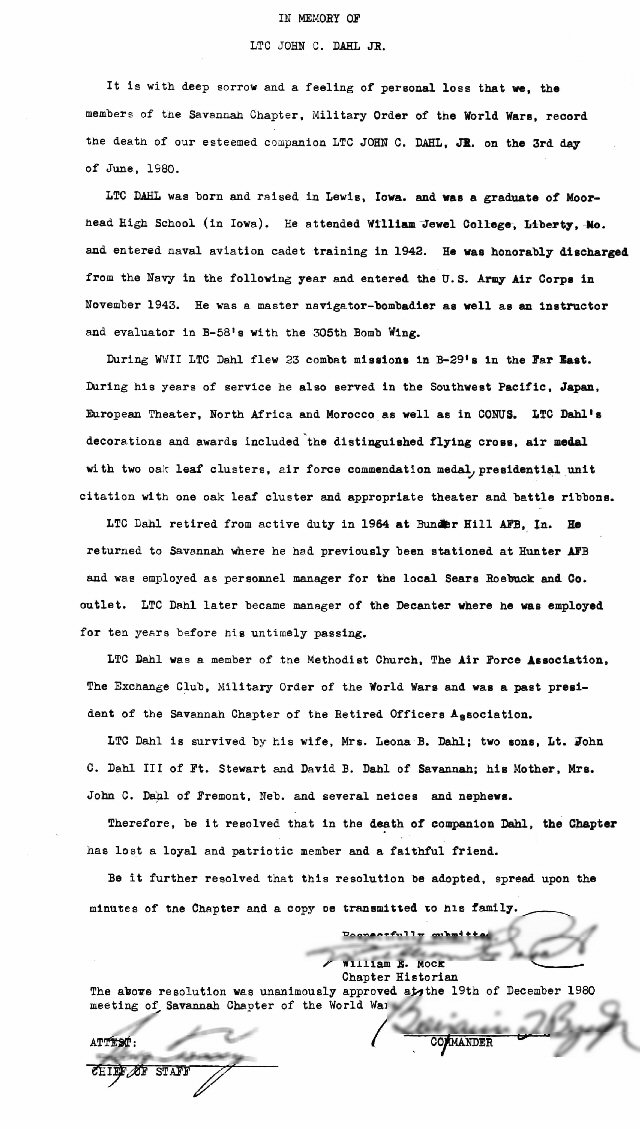 John C. Dahl, III of Ft. Stewart and David B. Dahl of