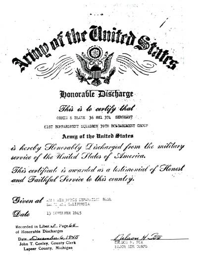 Five days later, on 24 April 1945 Orrin and his crew