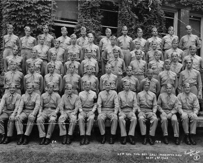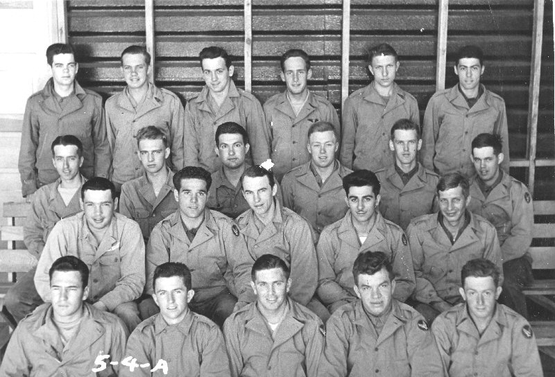 Pictured above appear to 2 groups - note 9A & 10A - you can see what appears to be a distinct space between between the 5th and 6th man in the front row - this space is evident in each row. Group 9a has 24 men - Melvin Howard is in 9A - The list of 24 names was made by Melvin in 1943. - Click left side of image to enlarge that area and read names of those pictured - click here to large entire photo.