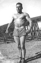 I saw a guy, he sure was built swell, what a man, no fooling. I guess my mouth gaped when he beat my prone of 315, he got 320. I mean to tell you he is a man and a half. I didn't get his name but you should see his chest & arms. I think his name is Kolz, no that isn't it, oh yes his name was Howard, that's it what a man!