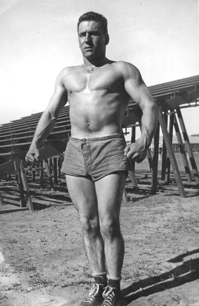 I'm in Lincoln Nebraska now. The camp is a hell hole, not worth a darn, tar paper barracks, coal stoves, plenty of smoke, at night it's colder than hell. The gym here isn't so hot either. All they have is an Olympic York set that only goes to 270 lbs and another that goes to 150 lbs, that's all.