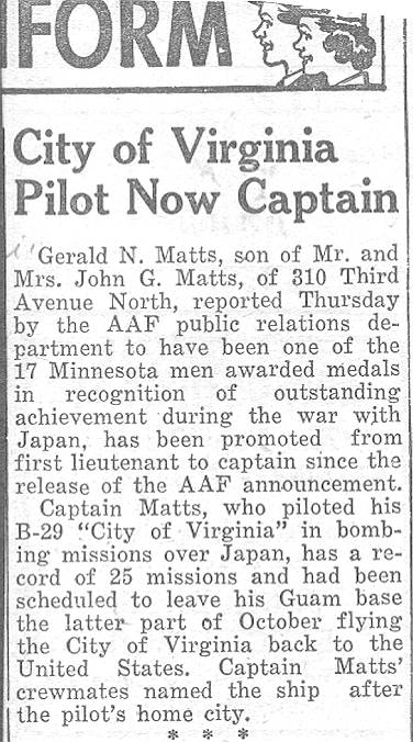 N. Matts was born April 23, 1923 in Virginia, Minnesota.