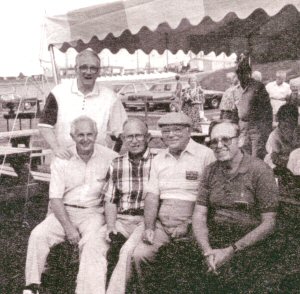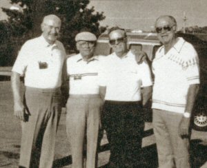 Left to Right: Robert Johnson, Pilot; Jim Wilkes, Radio Thomas Mayfield, TG and Len Kuther, Bombardier