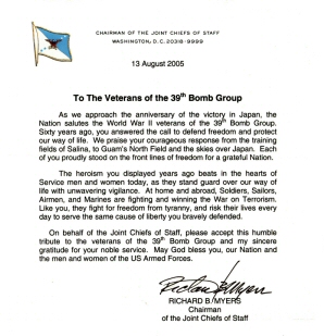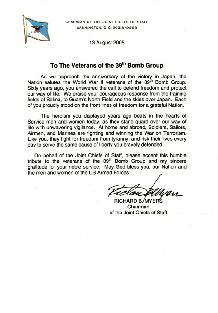 Joint Chiefs of Staff. The letter was presented by Colonel