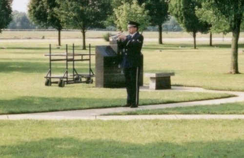 and bugler plays taps the color guard retires the