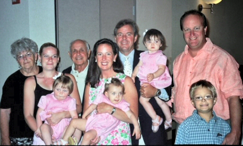Front Row L to R: Granddaughters Grace Connors Jacaruso (held by Jenna) and Madeline Calaire Jacaruso (being held by Katherine), grandson Tim Barber.