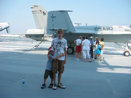 River (l) and Jeff on the Flight Deck - USS Yorktown