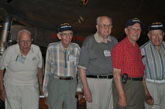 Bob Weiler, P-30, LG; Leonard P. Round, RG, Repl P-9; Marvin Demanzuk, P-2, Nav; Norm Brug, Mech P-31; Bernie Greene, P-31, Bombardier |